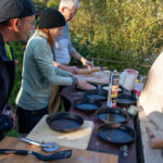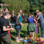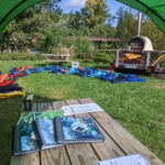 Wie ein paar Mal in dieser Saison war das Glück mit uns und es hat einfach alles gestimmt: Die Stimmung unter den über 50 Teilnehmer:innen war irgendwie extra ausgelassen, der Wetterfrosch war uns wohlgesonnen und hat uns tagsüber mit Sonne bei schon herbstlich-kühlen Temperaturen verwöhnt, unser Dinner-Experiment mit einem mobilen Pizza-Holzofen aus der Region war ein voller – und super leckerer – Erfolg und die gemeinsame Paddelsession am Samstagnachmittag auf der Nahe hat richtig Spaß gemacht. Schon bei der Begrüßungsrunde am Samstagmittag lag in der Luft, dass uns ein besonderes Wochenende erwartet, als ein paar Teilnehmer von den Anfängen von LWA, die seit Jahren nicht mehr dabei, aber doch noch in Kontakt waren, teils unerwartet auf der Wiese ankamen und von Sebastian direkt in die Arme geschlossen wurden.