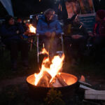 Es gab viel zu erzählen, viel zu umarmen und viel auszutauschen, aber irgendwann waren wir dann auf dem Wasser und haben dort mit dem Erzählen weitergemacht. Nach Paddeln und Pizza gab es beim Lagerfeuerabend eine Premiere: Sebastian hat live, unterstützt durch einige Bilder, alle Anwesenden an die Grenze von Yukon Territory und Alaska mitgenommen, zu den Gletscherflüssen und den Bären, und einen sehr offenen Einblick in die Geschichten und Anekdoten dieser besonderen Expedition gelesen.