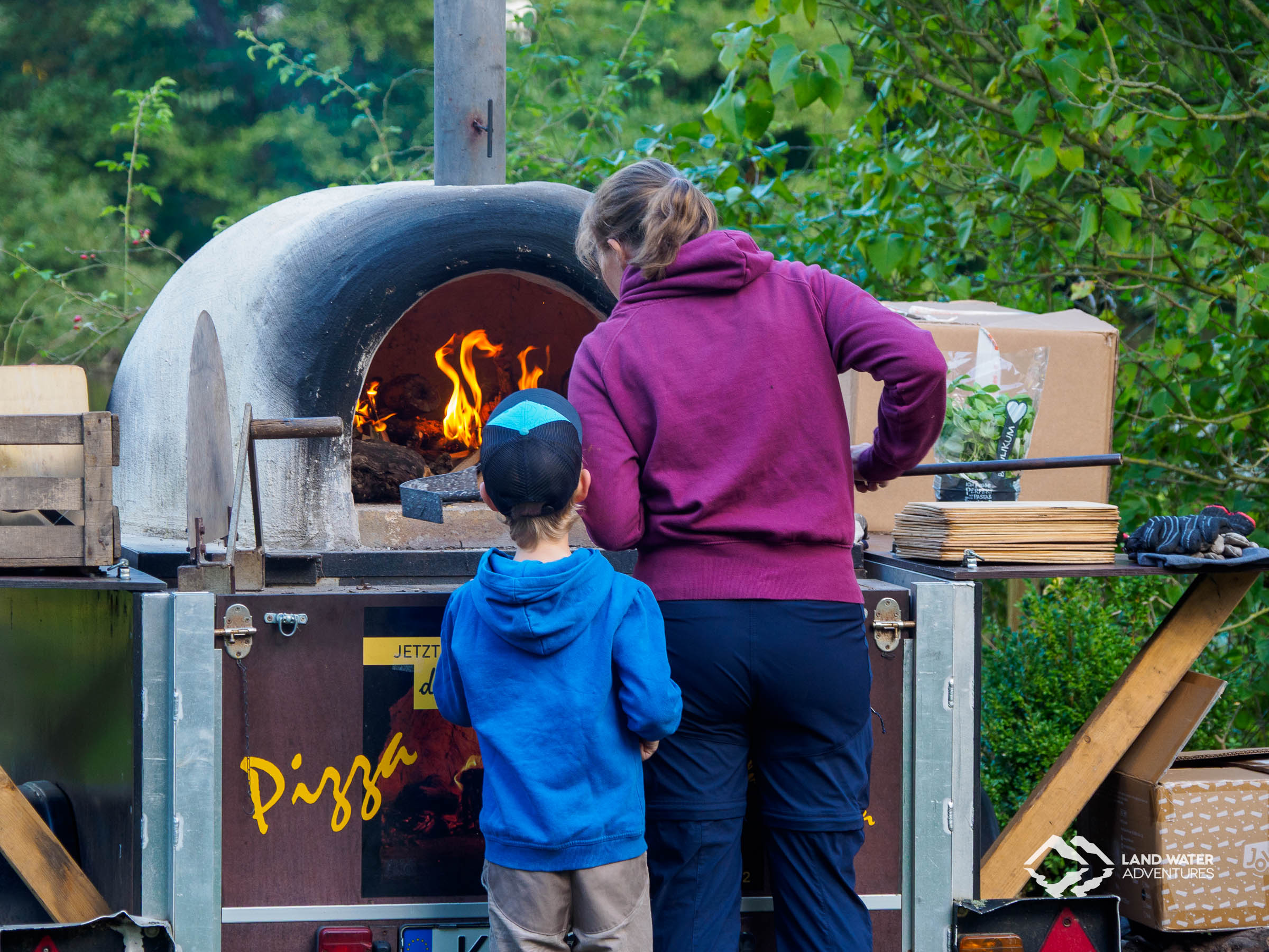 Tagelang vorher Regen, als wir am Platz ankommen, sind noch die Pfützen da, aber pünktlich zum Saisonabschluss 2025 klart das Wetter auf und am Abend, als die Pizzen im Steinofen bruzzeln, werden wir von der Abendsonne beschienen. Das, zusammen mit spaßig viel Wasser in der Nahe, war das perfekte Grundrezept für eine gelungene Veranstaltung.